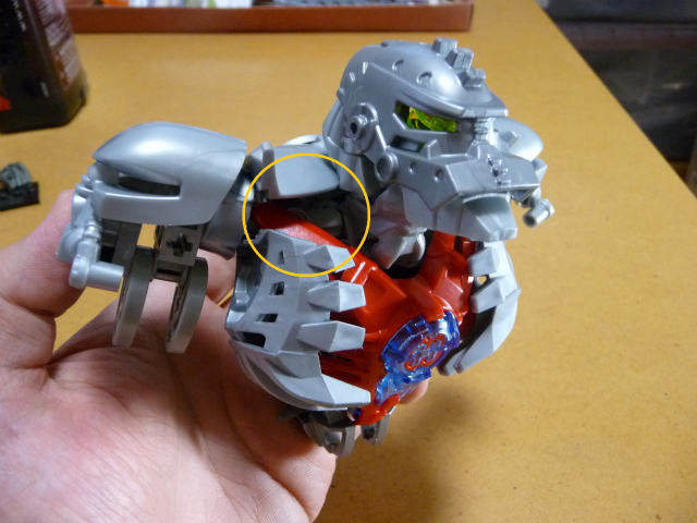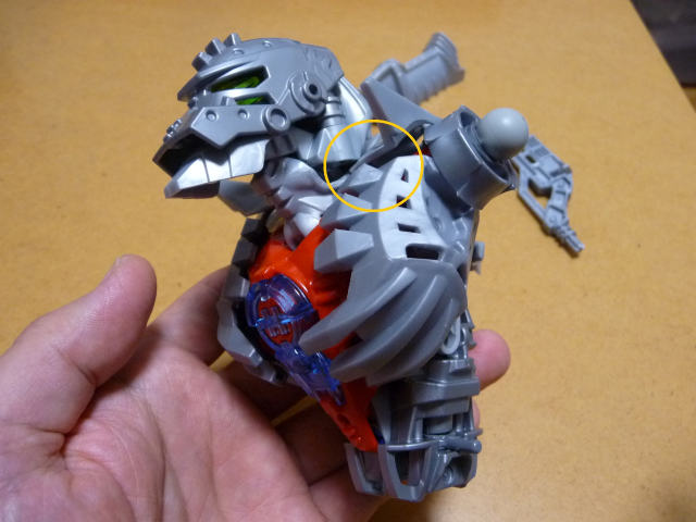 写真にマル印を付けてるんですが、サムネだと若干見にくいので、クリックして確認していただくとして、肩口のところの隙間をどう埋めようかと思案中なのですよ。背中側にあるのはダンカン・バルクの胸アーマーですが、これと胸に使っているアボーキーとの隙間は、コンセプト上、銀色でなきゃ都合が悪いんですよねぇ(笑)。