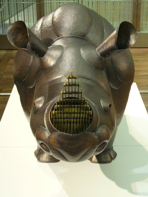 サイ。ツノは、前から見ると板を並べて表現してあります。