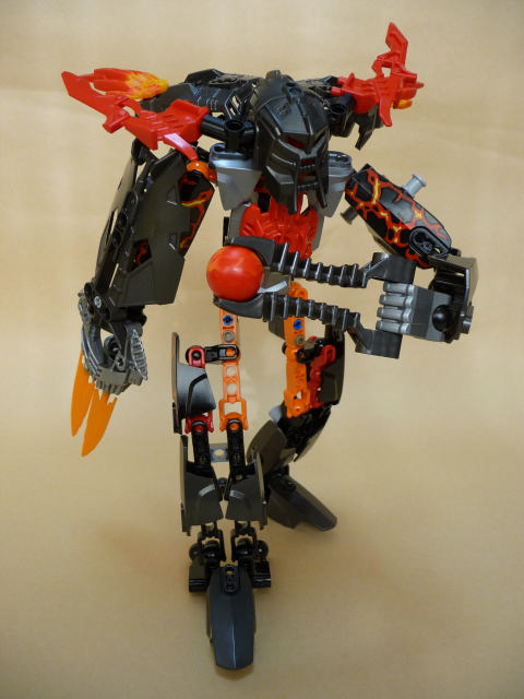 全体的なルックスは微妙(笑)。今回から、関節もアーマーもボール×ボール受け接続になっていて、大箱モノたるファイヤーロードさんはダブルボール関節が各所にあるんですけど、可動範囲もまた微妙。特に上体。ガシガシ動かして遊びたい人にはツライかも。自分の目的は、新規接続パーツの収集なので何の問題もないんスけどね。