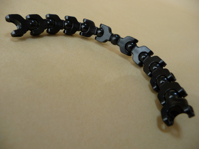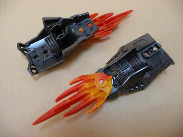 端部でなく中ほどにボールがあるパーツをどんな風に生かせるのか、まだ何も見えていません。ボール部分に取り付けるアーマーも、反対(裏)側には何も取り付けられなくなるわけで、ひと工夫が要求されるところですよねー。そうそう、ボールそのものにある、ボウリングの球みたいな3つの穴モールドの目的は何なんでしょう?気になります。