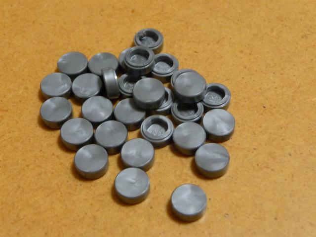 で、今回仕入れた銀色の丸タイル、取り付けると意外に大きく