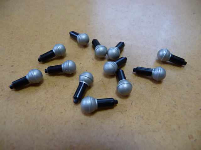 ボール付き軸(右)とマイク(左)を軸穴に挿して比較すると、おおっ!マイクの方が出っ張らずに、さりげなく装飾できる感じがするじゃないですかー。