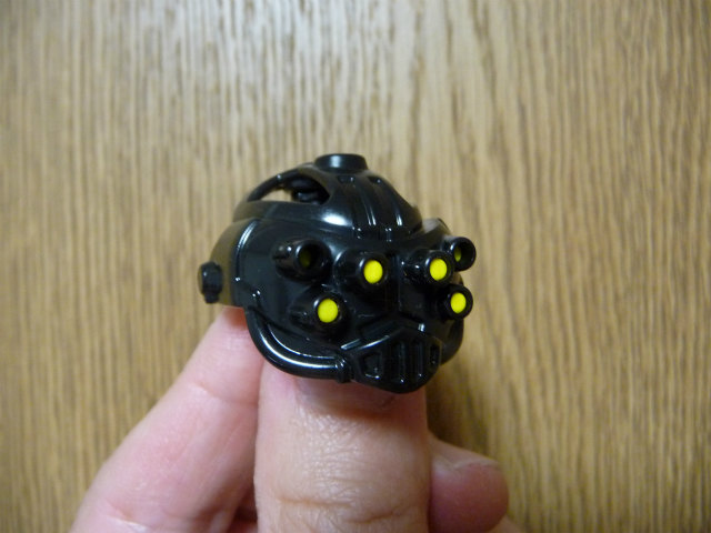コアハンターのマスクに開いている穴には、ミニフィグの手の軸が通ることは